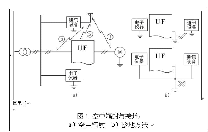 变频器系统电磁干扰的传播途径:变频器能产生功率较大的谐波,对系统其他设备干扰性较强。其干扰途径与一般电磁干扰途径一样,有电磁辐射、电路耦合、感应耦合等。 1. 电磁辐射 变频器对电网来说