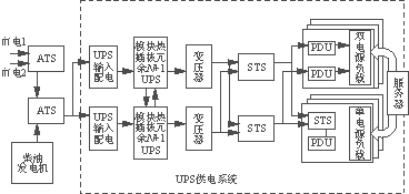 (1)由单机模块化+冗余的UPS系统组成双总线系统,是可用性等级最高的UPS供电系统;