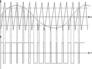 图2 放大器中的三角波、音频正弦信号产生的PWM波形及其相互关系