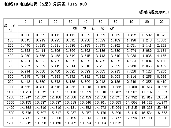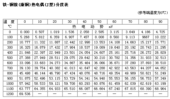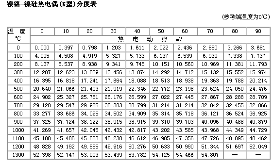 热电偶分度表下载: