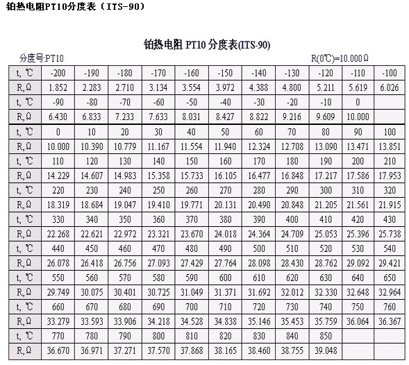 40520Pt100分度表如何使用?PT100/PT1000热电阻值计算