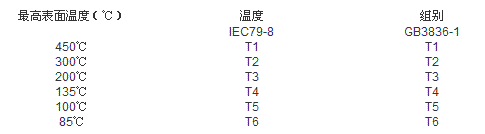 防爆电气设备的防爆标志内容包括:防爆型式+设备类别+(气体组别)+温度组别