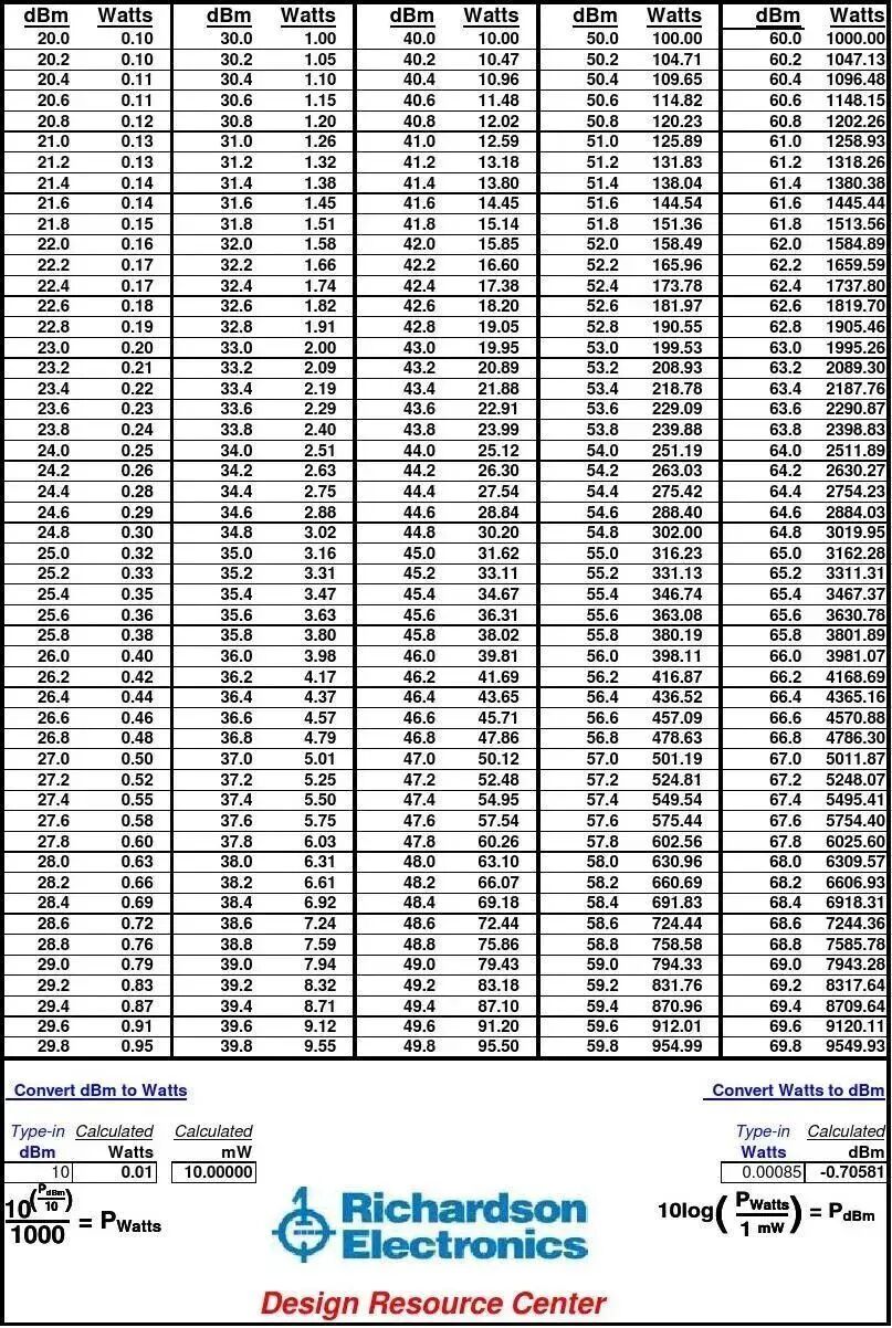 dBm:功率相对于1mW的比值;