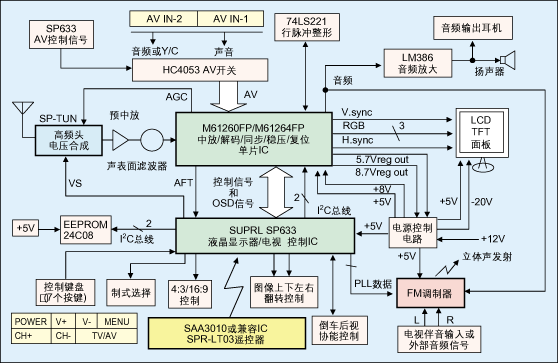 1047 SP633是专为小尺寸车载或便携式液晶显示器/电视开发的多功能 MCU控制芯片(已做了掩膜)。基于SP633的小尺寸液晶电视设计,主芯片为MCU SP633以及单芯片电视解码器 M61260FP/M61266FP